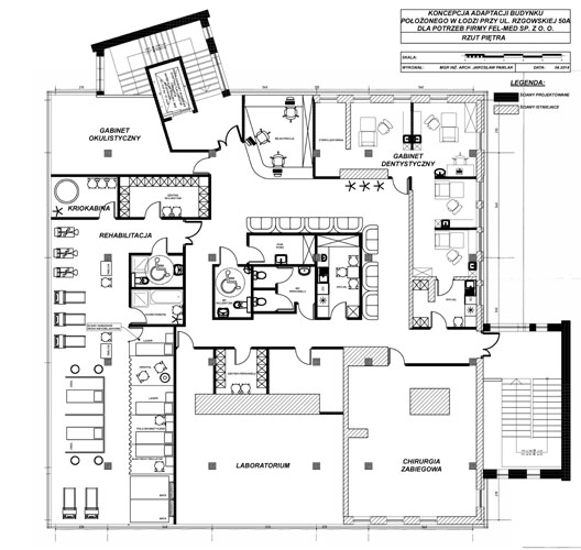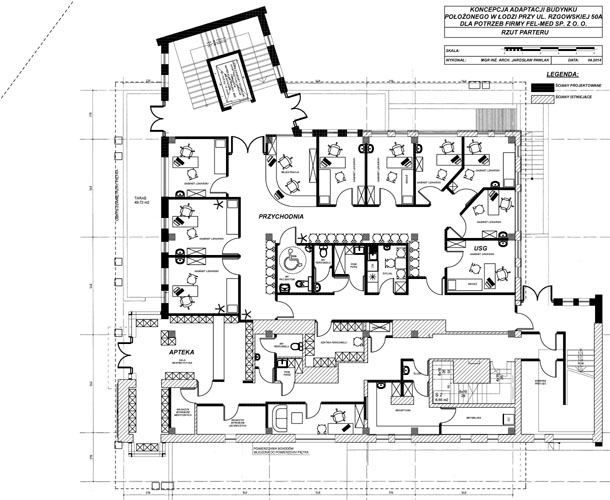 KONCEPCJA PRZEBUDOWY BUDYNKU RESTAURACJI NA ZAKŁAD OPIEKI ZDROWOTNEJ, pow. ok.900 m2, ŁÓDŹ.