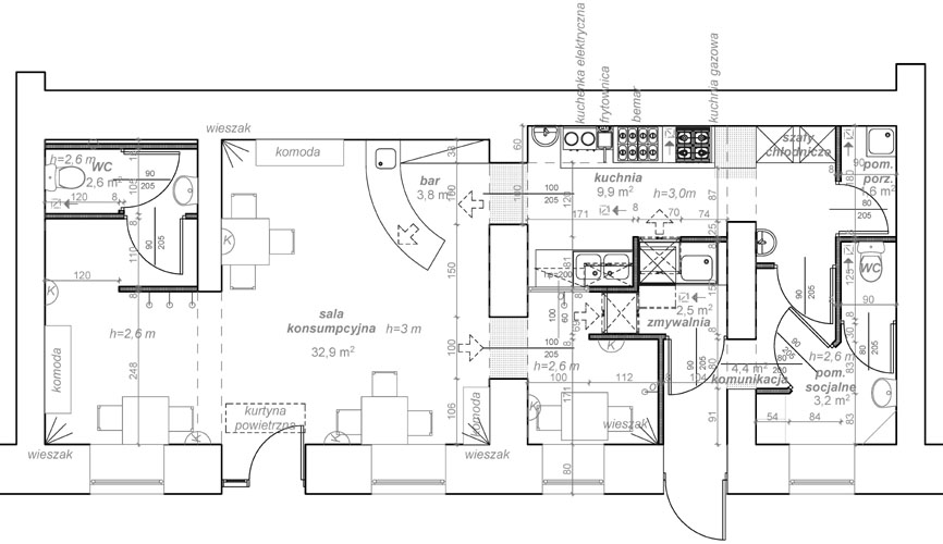 KONCEPCJA I PROJEKT BUDOWLANY ZE ZMIANĄ SPOSOBU UŻYTKOWANIA Z POZWOLENIEM NA BUDOWĘ PRZEBUDOWY LOKALI HANDLOWYCH NA GASTRONOMICZNY, pow. ok.70 m2, ŁÓDŹ.